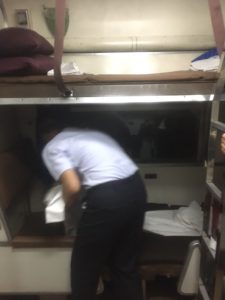 写真はブレてしまいましたが女性の車掌が準備してくれました。